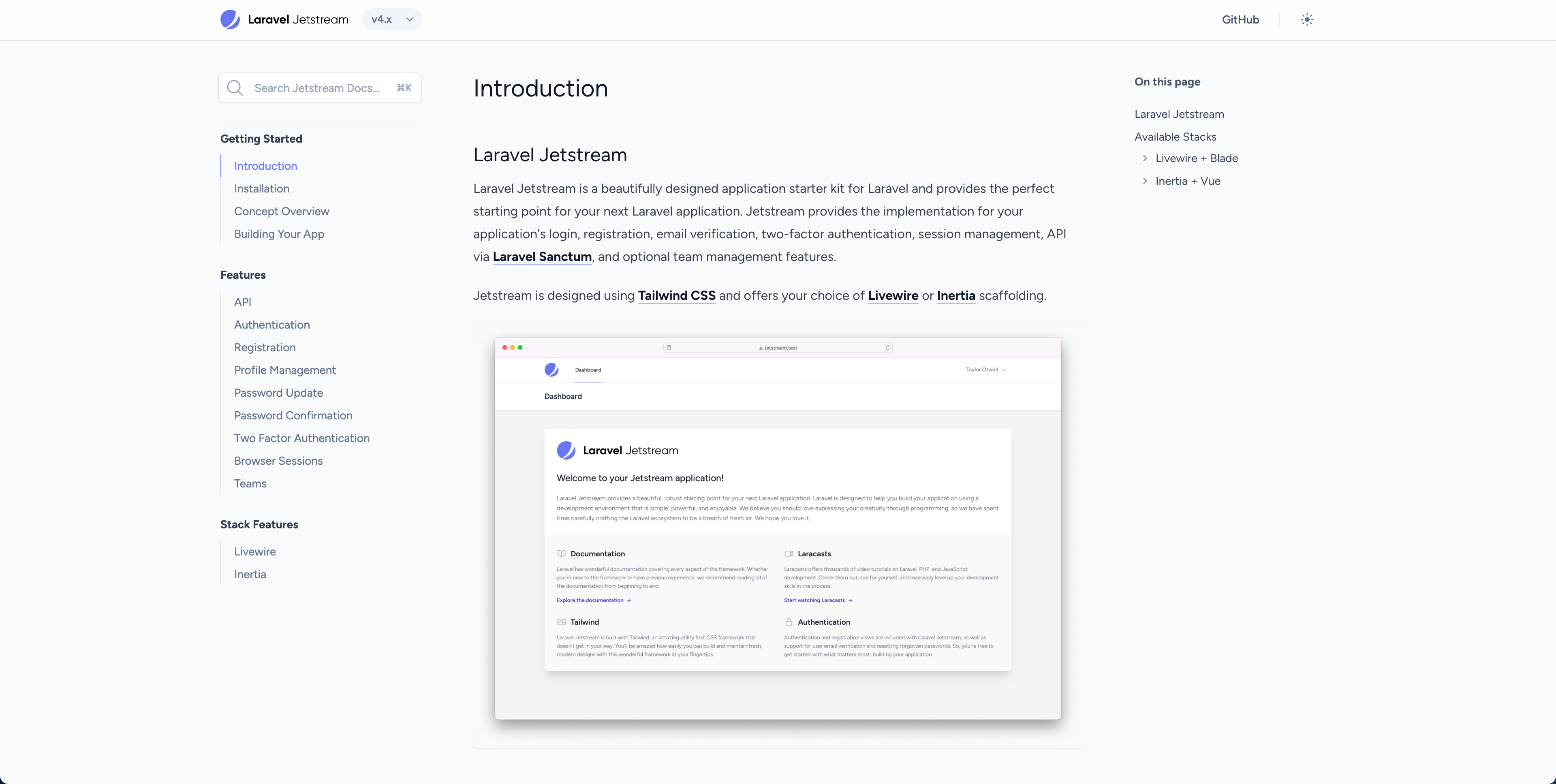 Laravelで使用されるjetstreamの公式サイトです。