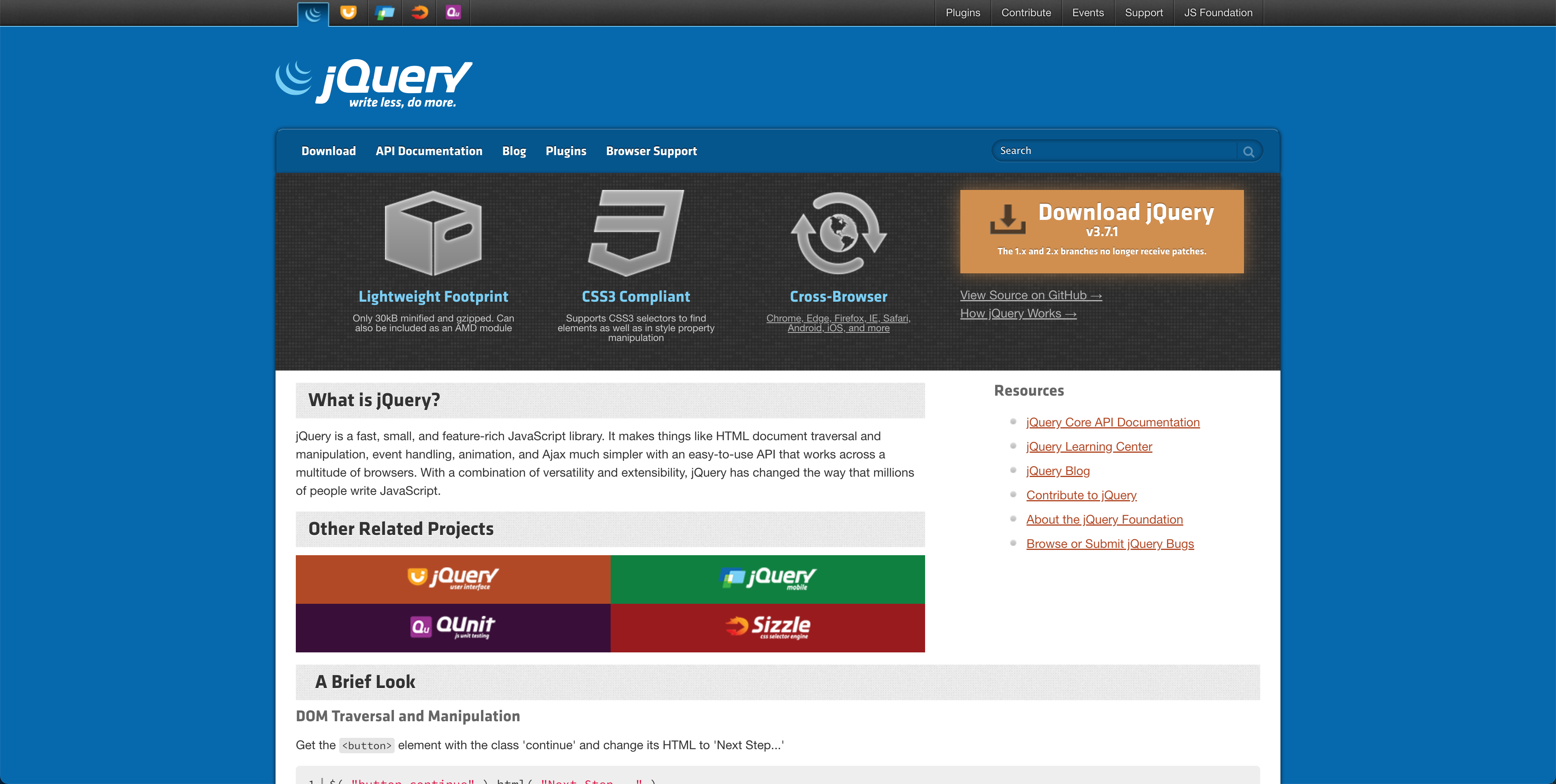 JavaScriptのライブラリjQuery公式サイトです。