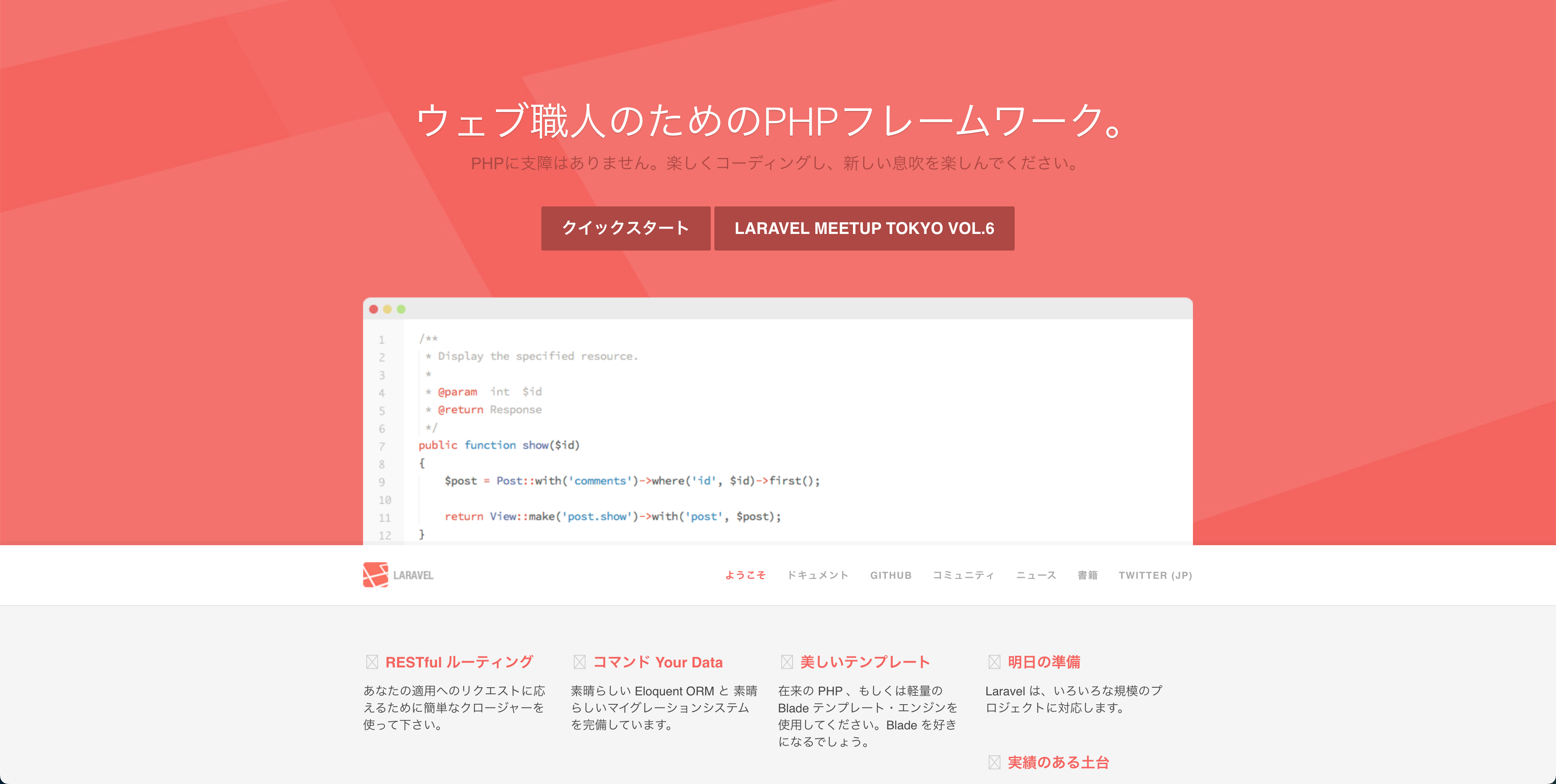 PHPのフレームワークであるLaravelの日本語の公式サイトです。
