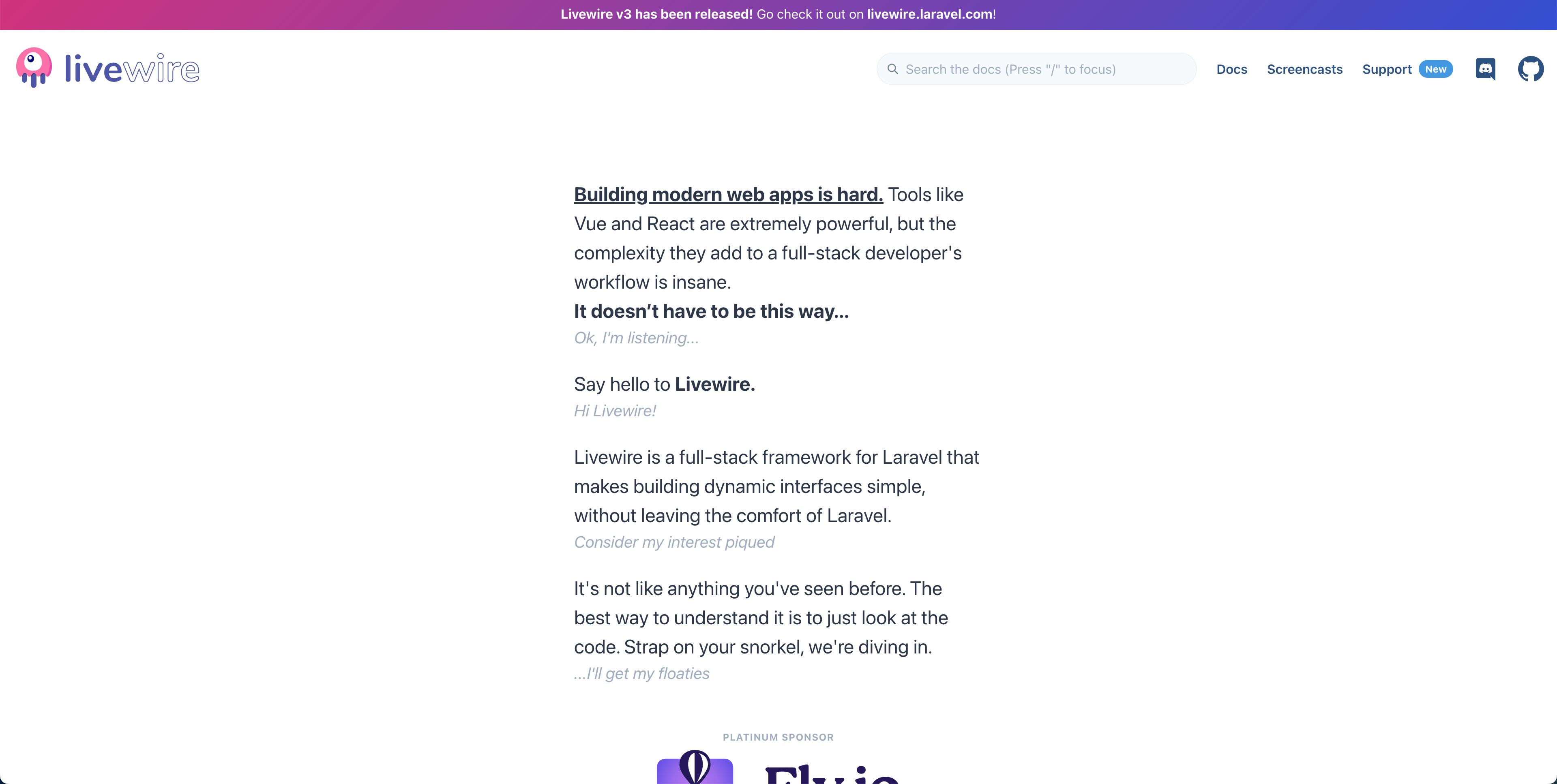 Laravelで使用されるLivewireの公式サイトです。
