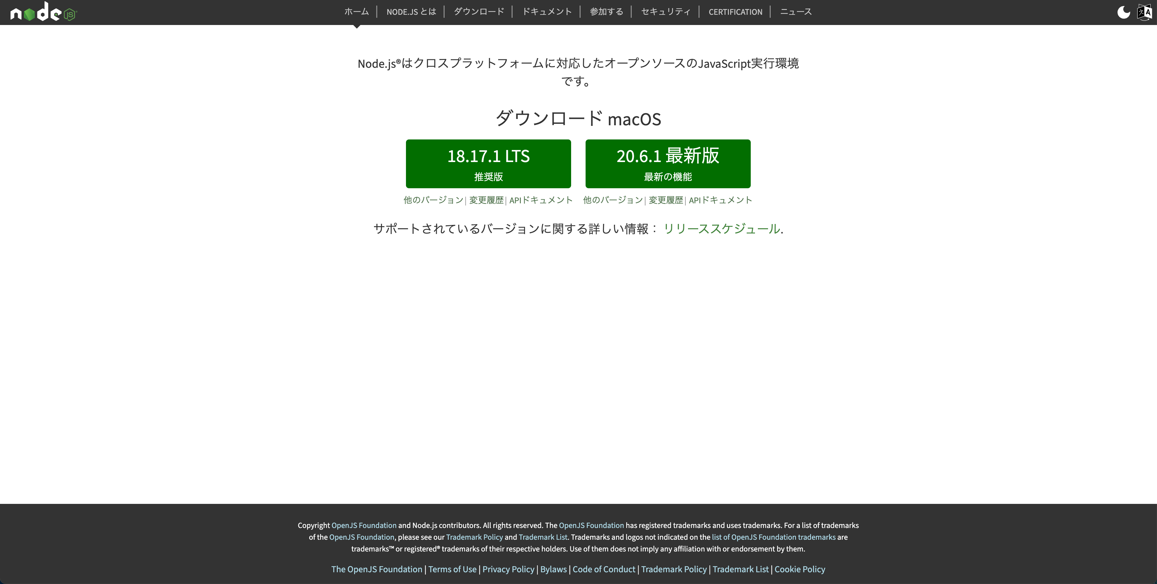 JavaScriptのサーバーサイド言語Node.jsの公式サイトです。