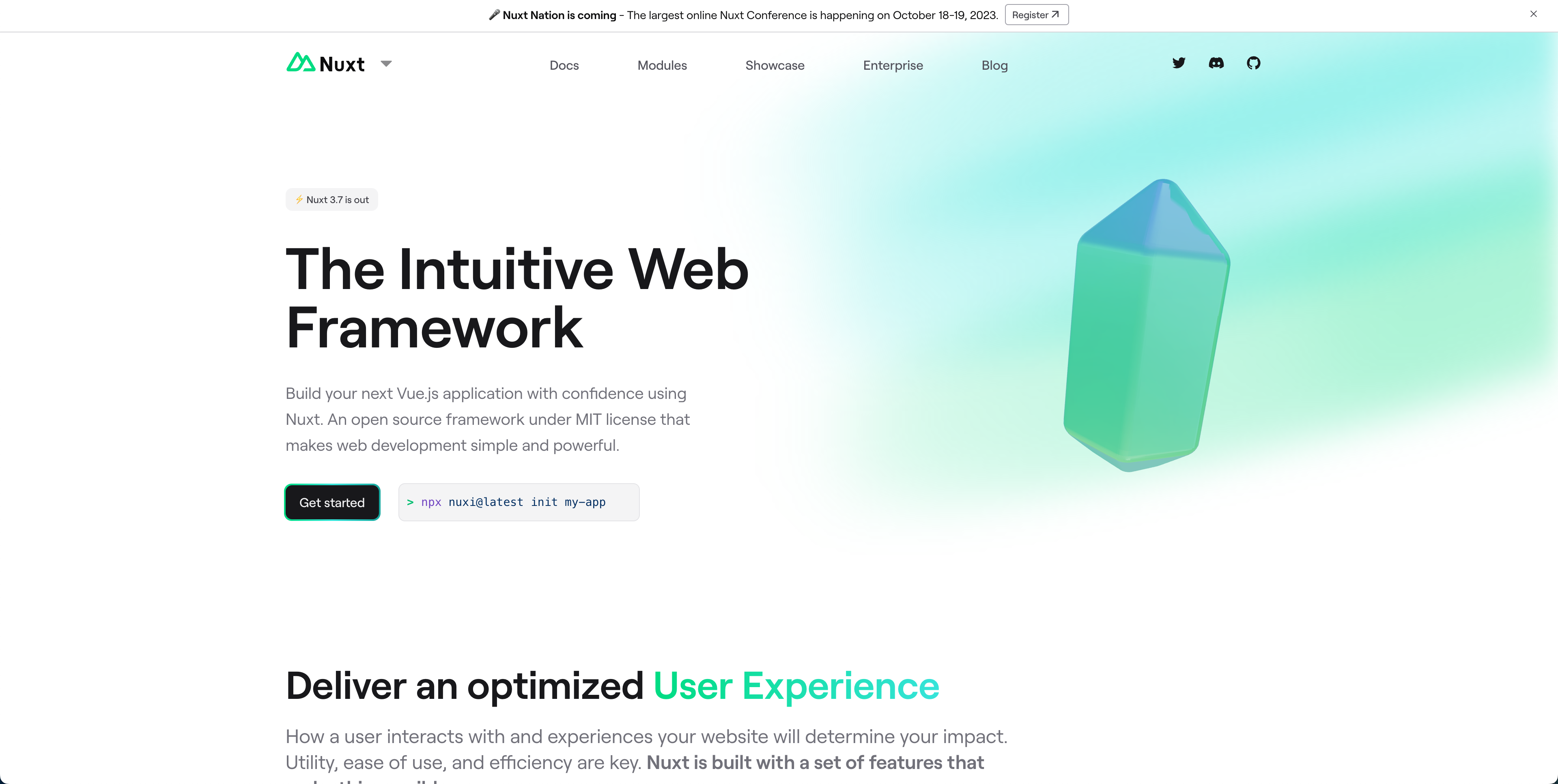 Vue.jsのフレームワークNuxt.jsの公式サイトです。
