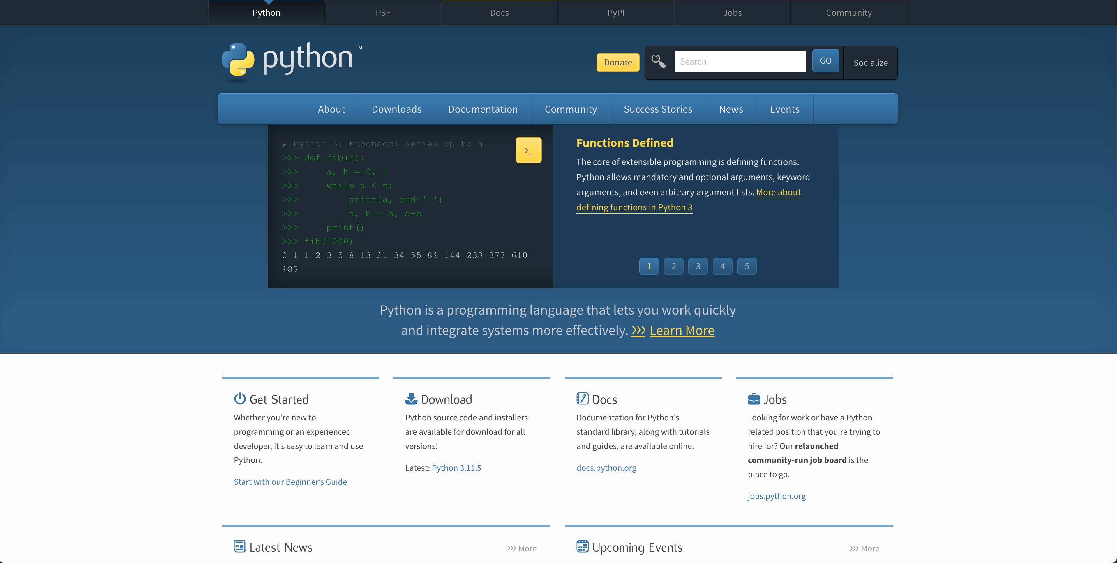 Pythonの公式サイトです。