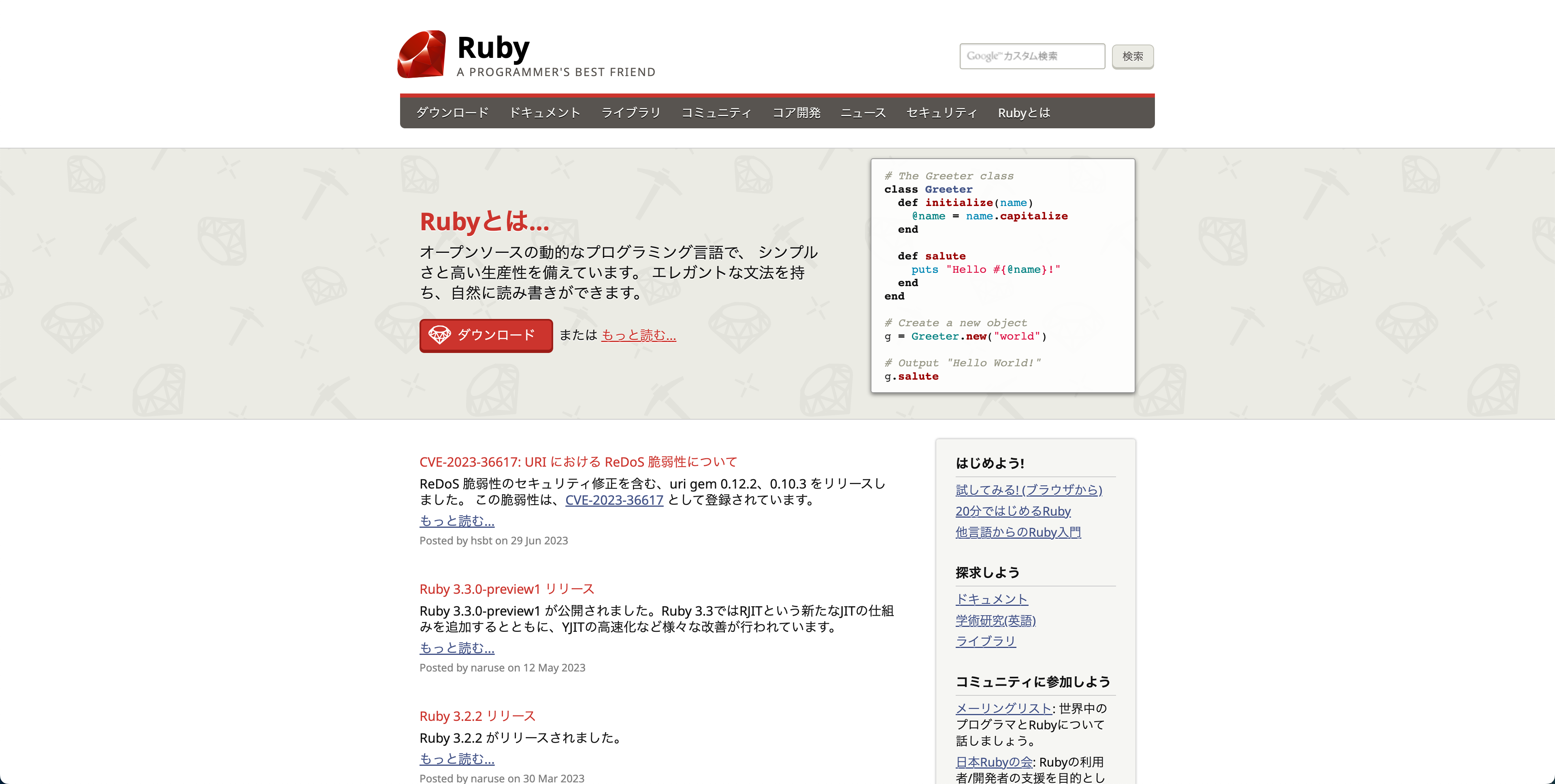 Rubyの公式サイトです。