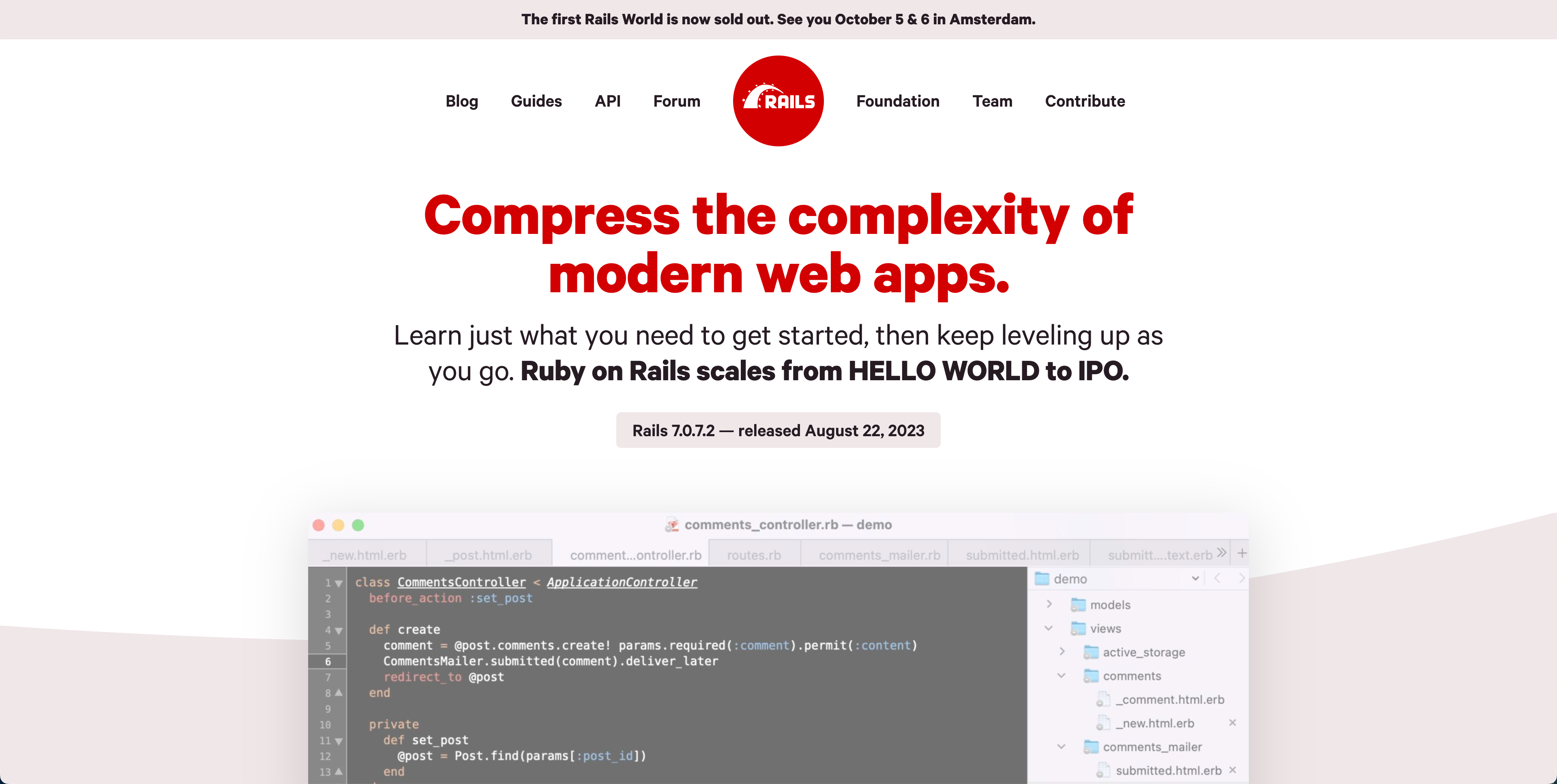 RubyのフレームワークであるRuby on Railsの公式サイトです。