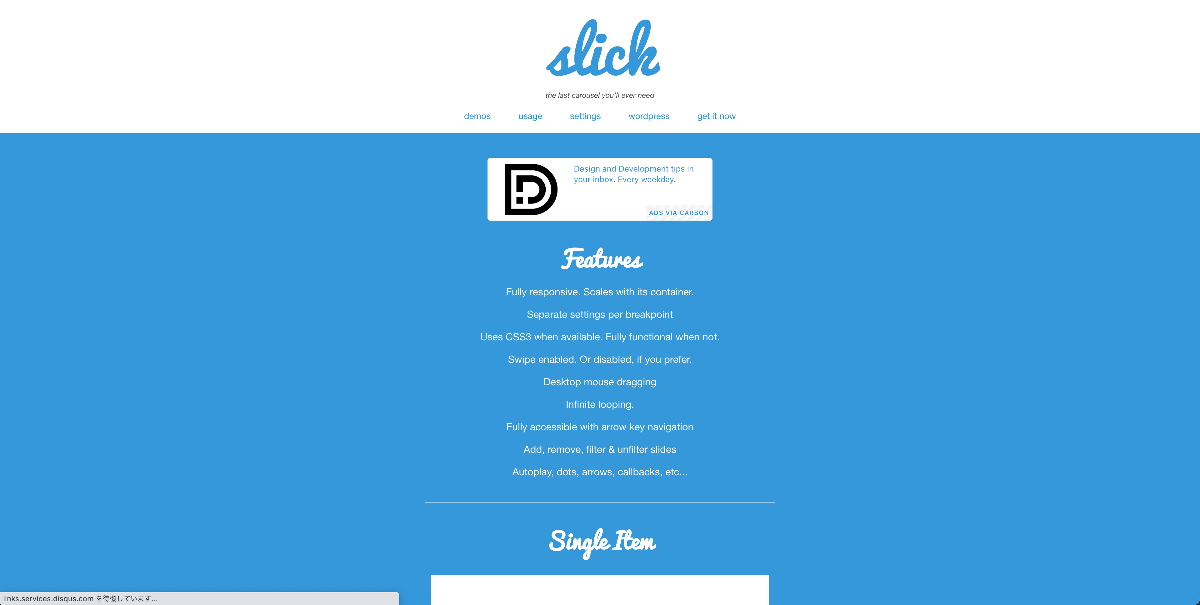 jQueryで使えるスライドショー用ライブラリSlickの公式サイトです。