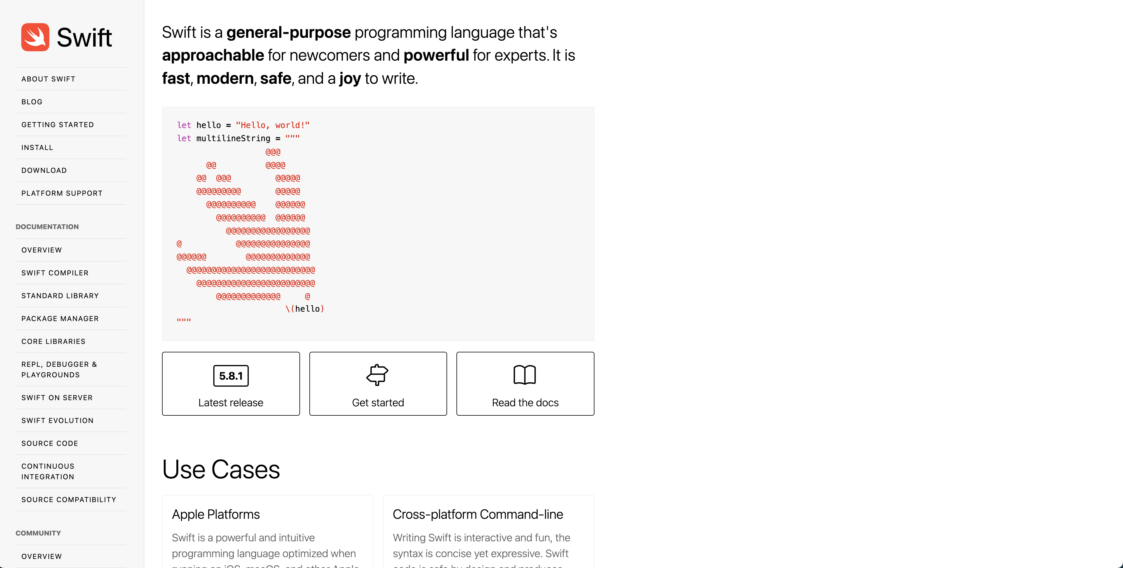 Swiftの公式サイトです。