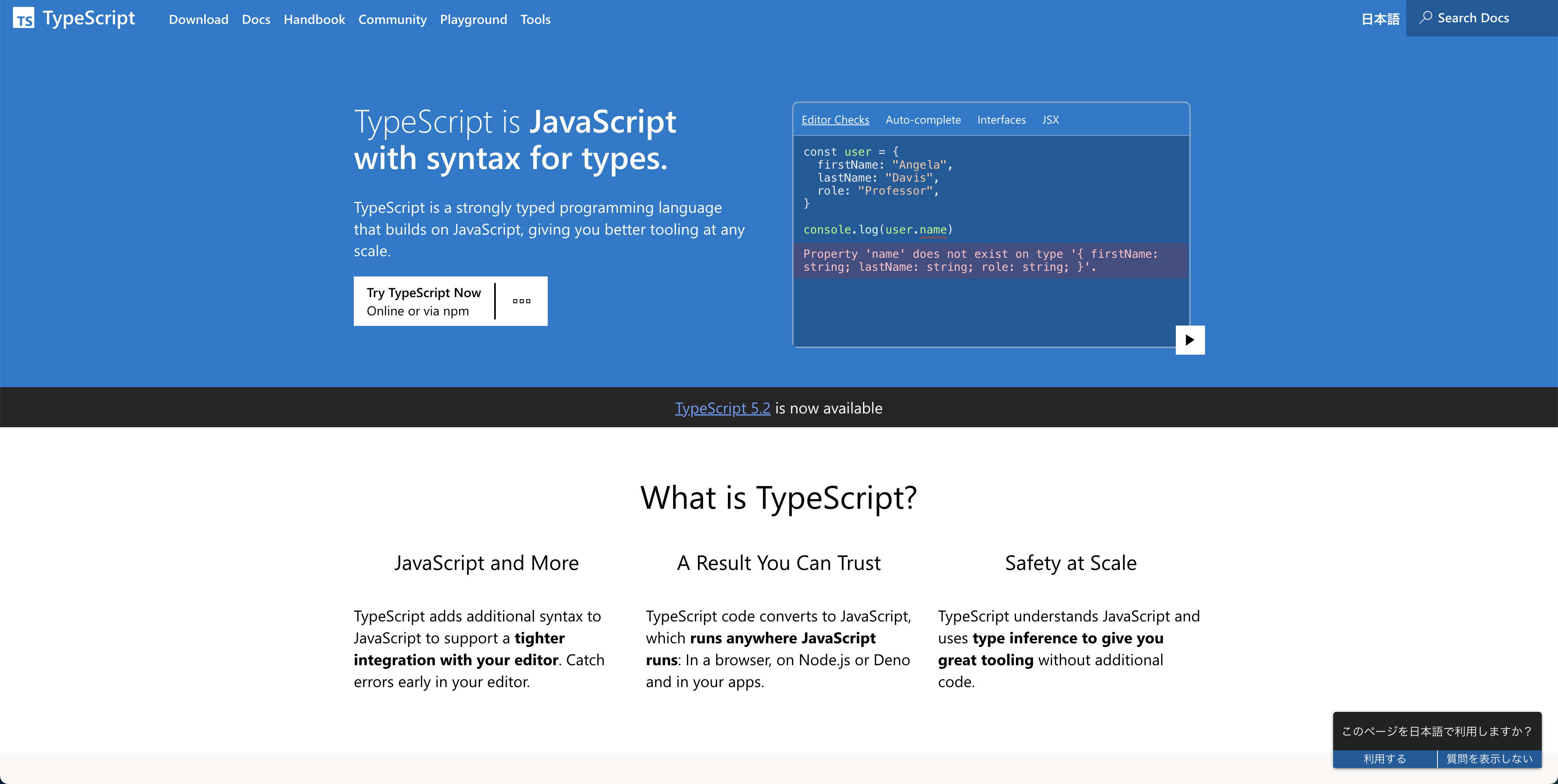 TypeScriptの公式サイトです。